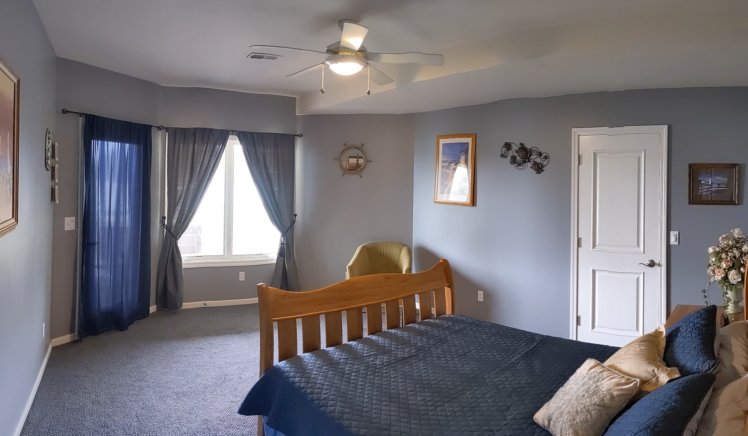 Bedroom 1, lake view and door to deck